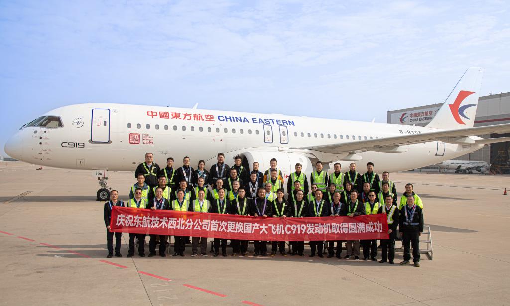 東航完成商業(yè)飛行國產(chǎn)大飛機(jī)C919換發(fā)工作。(受訪者供圖)