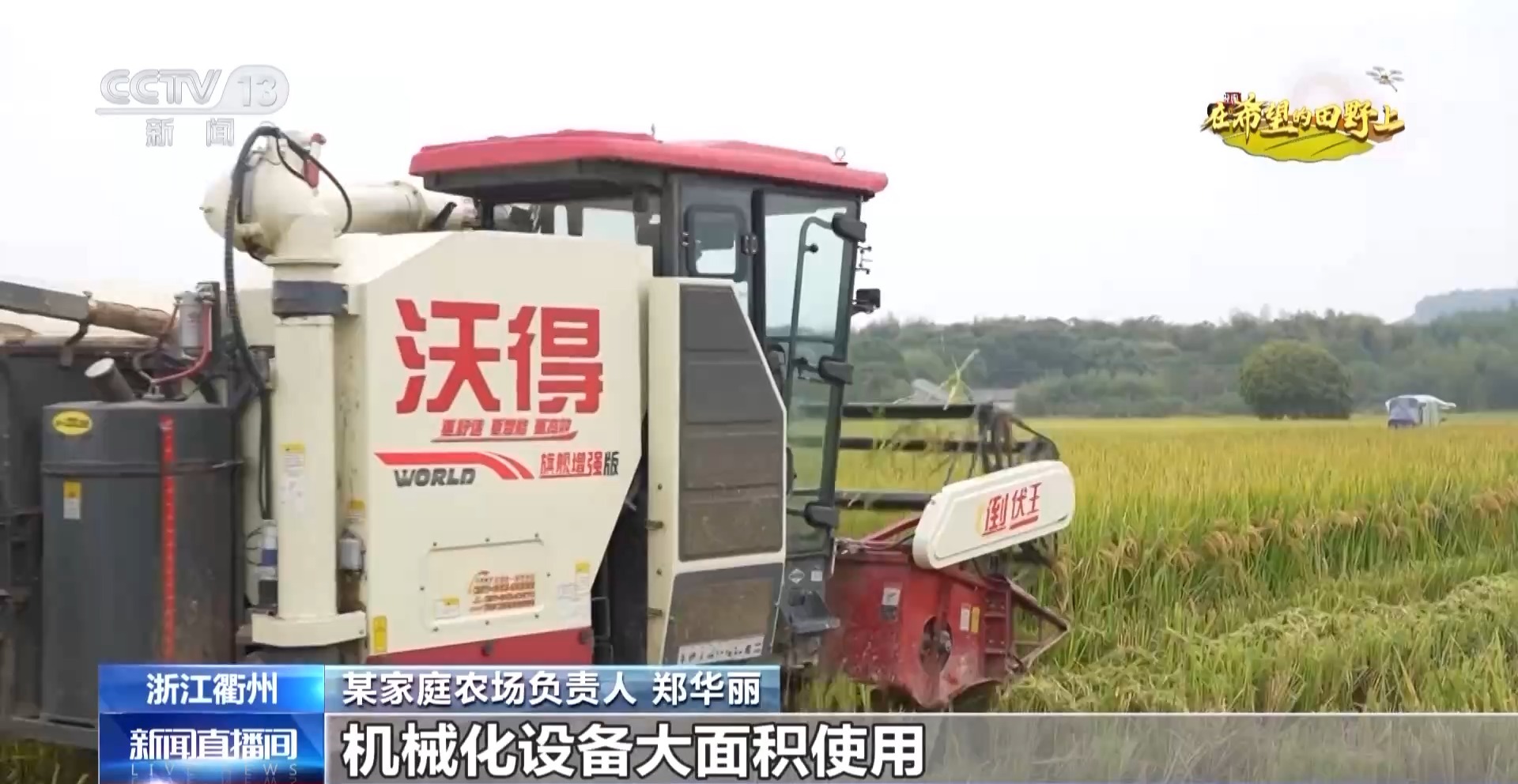 在衢州柯城區(qū)的一片稻田里,金黃的晚稻成塊連片,串串稻穗顆粒飽滿,壓彎了稻稈,收割機(jī)在田間穿梭。農(nóng)場負(fù)責(zé)人介紹,今年他們加大了機(jī)械化設(shè)備的使用比例,提升了種植效益。