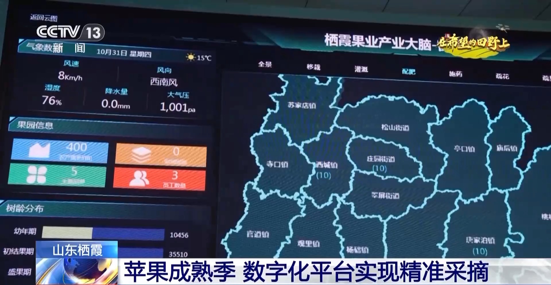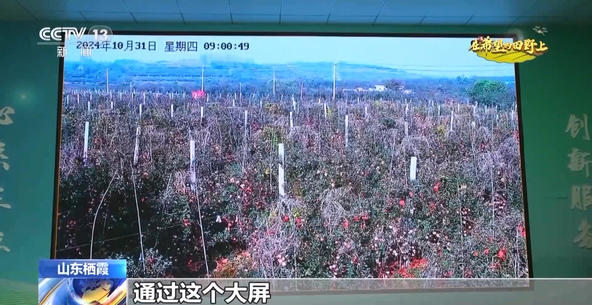 棲霞市供銷合作社聯(lián)合社負(fù)責(zé)人 李國勇:通過這個大屏,我們可以清楚地看到果樹的生長情況,平臺也會將果樹生長情況相關(guān)信息通報(bào)給果農(nóng)進(jìn)行精準(zhǔn)采摘。