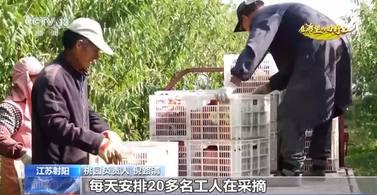 在鹽城市射陽縣新坍鎮(zhèn)的一處桃園種植了4萬多株桃樹。果農(nóng)們忙著摘桃、分揀、裝筐,預(yù)計(jì)整個采摘銷售期能持續(xù)一個月左右。