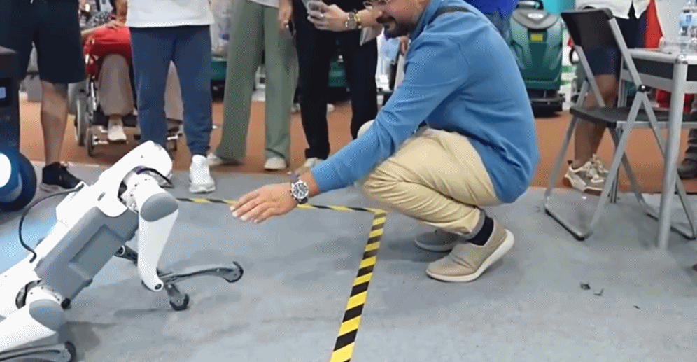 一個(gè)被不少采購(gòu)商圍觀的展位,正展示著他們的新產(chǎn)品:活潑的機(jī)器狗,它不僅可以用于居家陪伴,還可以用于巡邏記錄。不僅有機(jī)器狗,這家企業(yè)還帶來了具備其他功能的國(guó)產(chǎn)機(jī)器人。