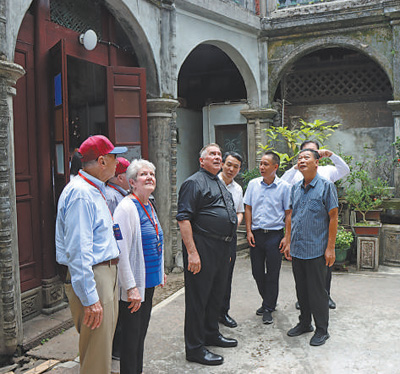 飛虎隊(duì)代表團(tuán)成員參觀飛虎隊(duì)在福建長(zhǎng)汀的駐扎地黃氏麗園。