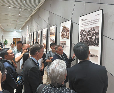 中美嘉賓在湖南長(zhǎng)沙博物館參觀飛虎隊(duì)主題歷史圖片展。