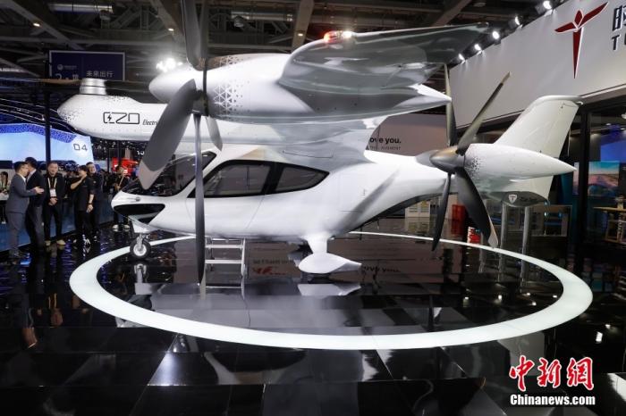 11月5日,在第七屆進(jìn)博會(huì)汽車(chē)展區(qū),上海時(shí)的科技公司展示E20傾轉(zhuǎn)旋翼載人電動(dòng)垂直起降飛行器。第七屆中國(guó)國(guó)際進(jìn)口博覽會(huì)于11月5日至10日在上海舉行。中新社記者 殷立勤 攝