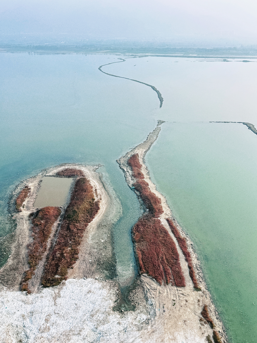 中條山下的運(yùn)城“七彩鹽湖”。 運(yùn)城市委網(wǎng)信辦 供圖