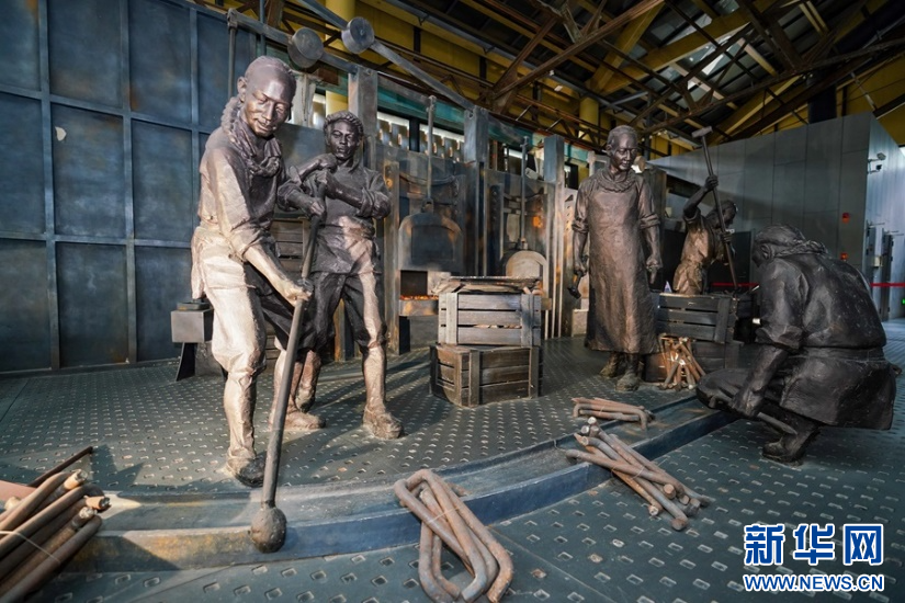 鐵脅廠內(nèi)部展示舊時工作場景。 新華網(wǎng) 肖和勇 攝