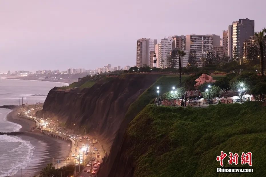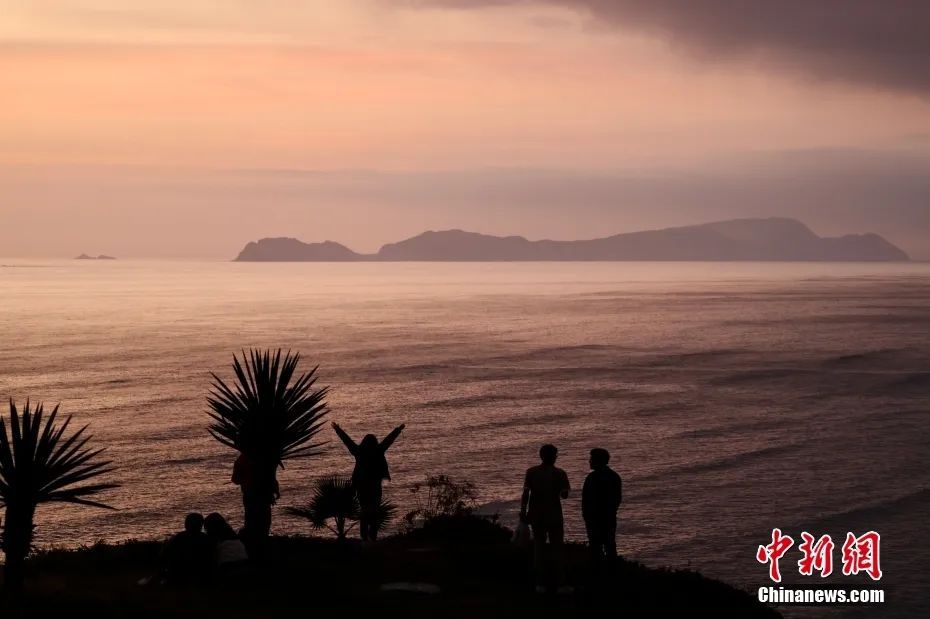 當(dāng)?shù)貢r(shí)間11月12日,秘魯首都利馬,日落時(shí)分的海岸線美景。中新社記者 盛佳鵬 攝