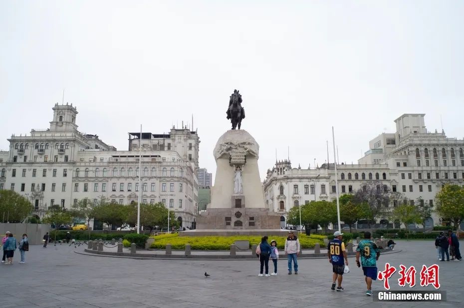 當(dāng)?shù)貢r(shí)間11月12日,秘魯首都利馬老城的圣馬丁廣場(chǎng)。中新社記者 盛佳鵬 攝