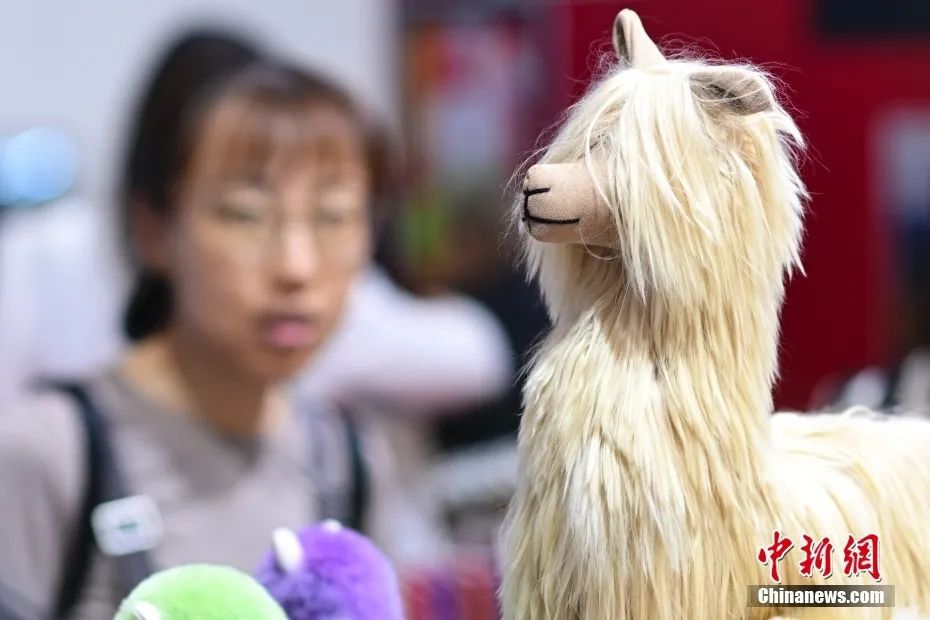 2023年9月4日,服貿(mào)會(huì)國(guó)家會(huì)議中心展區(qū),秘魯展臺(tái)羊駝毛制品吸引參觀者。中新社記者 田雨昊 攝