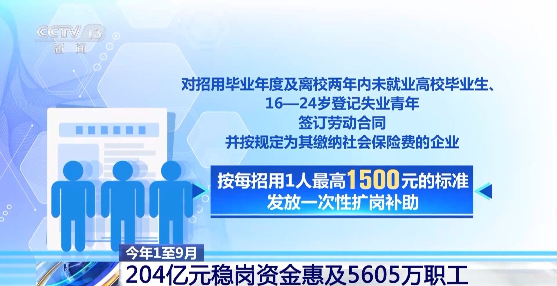 對(duì)招用畢業(yè)年度及離校兩年內(nèi)未就業(yè)高校畢業(yè)生、16到24歲登記失業(yè)青年,簽訂勞動(dòng)合同,并按規(guī)定為其繳納社會(huì)保險(xiǎn)費(fèi)的企業(yè),按每招用1人最高1500元的標(biāo)準(zhǔn)發(fā)放一次性擴(kuò)崗補(bǔ)助,今年以來(lái)已向17萬(wàn)戶企業(yè)發(fā)放9億元,惠及62萬(wàn)高校畢業(yè)生等青年群體。