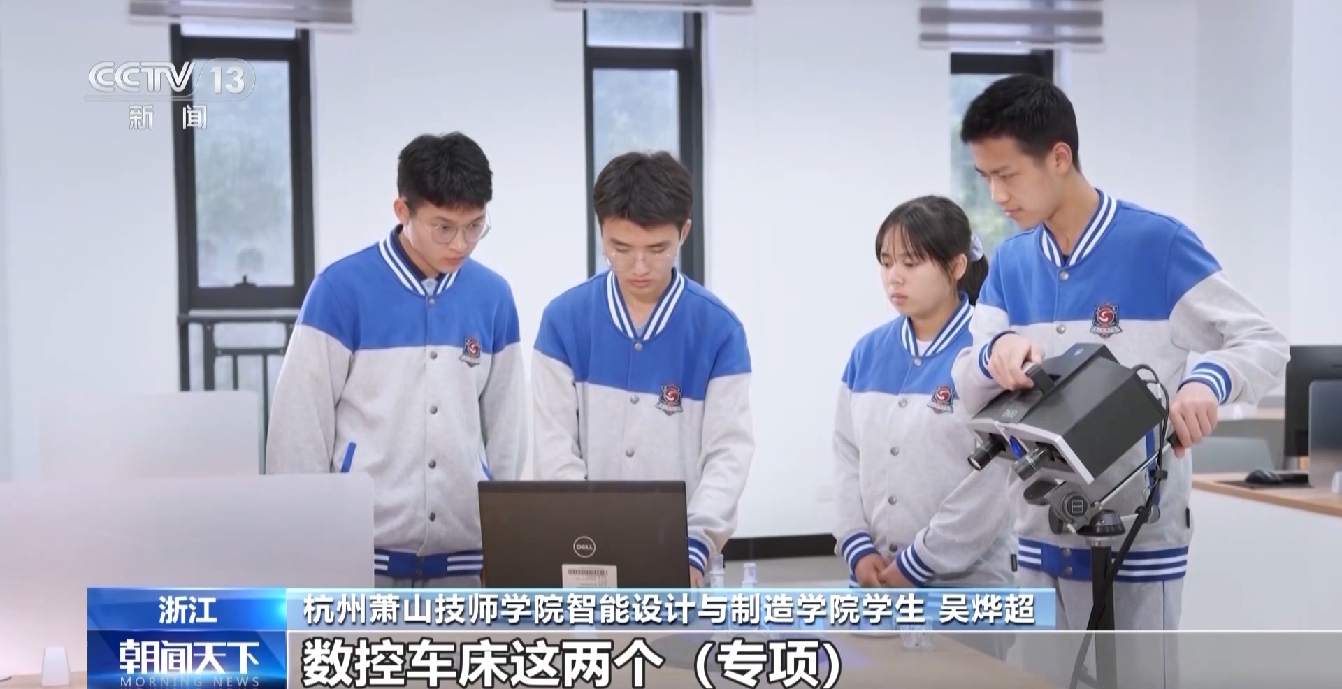 在杭州蕭山技師學(xué)院的多軸加工教學(xué)工作站里,學(xué)生們正在進(jìn)行實(shí)操訓(xùn)練。體積最大的這臺(tái)叫五軸加工中心,專門(mén)用于加工航天裝備、精密器械的復(fù)雜曲面。一些學(xué)生告訴記者,像這樣的大家伙,這兩年學(xué)校沒(méi)少添置。