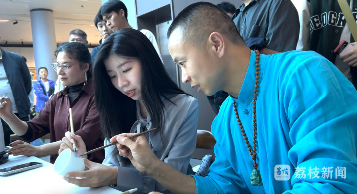 楊慶宜隨老師學習瓷畫創(chuàng)作