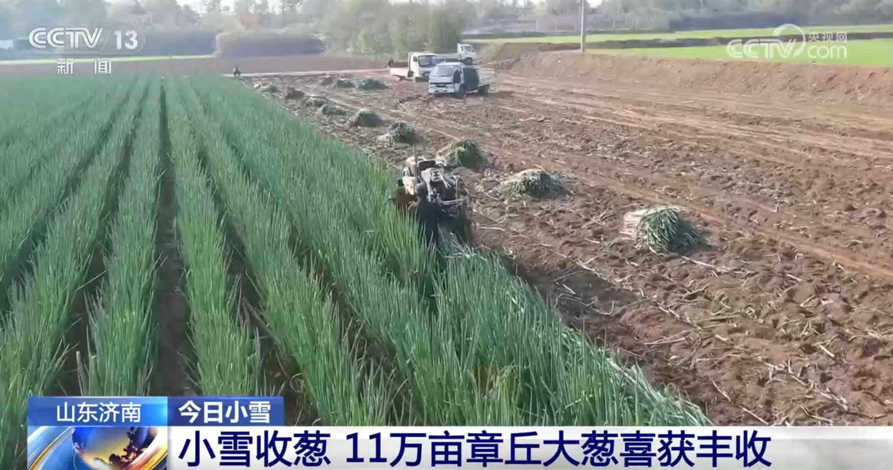 山東濟(jì)南:小雪收蔥 11萬(wàn)畝章丘大蔥喜獲豐收