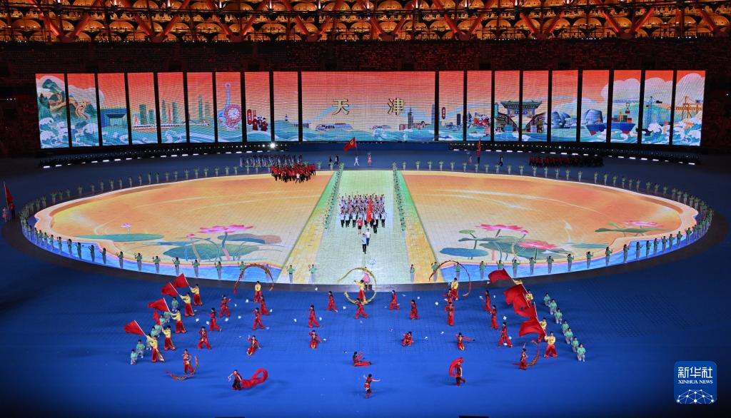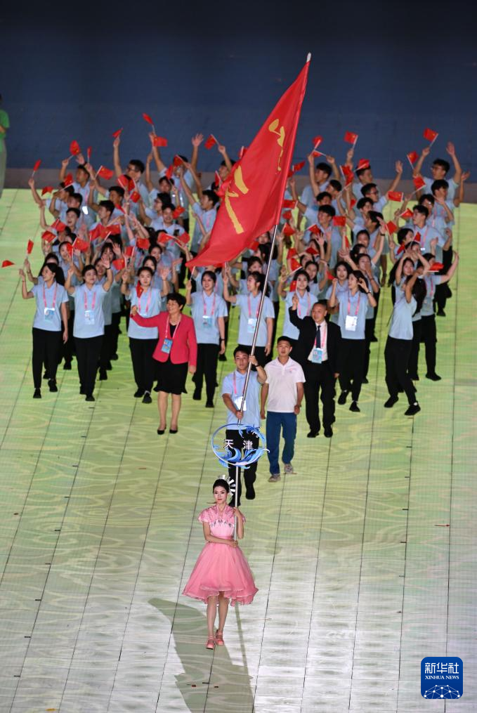 11月22日,天津市代表團(tuán)在開幕式上入場。