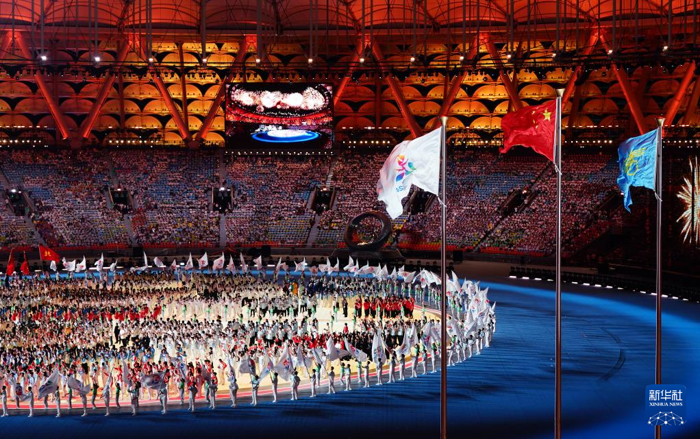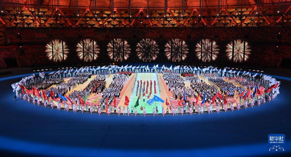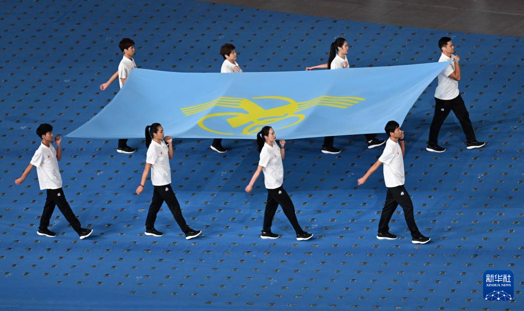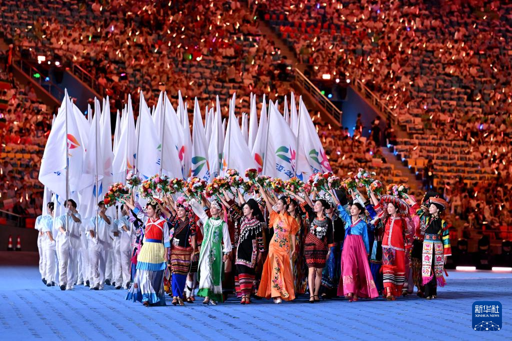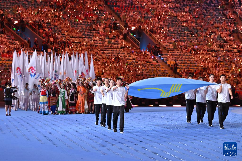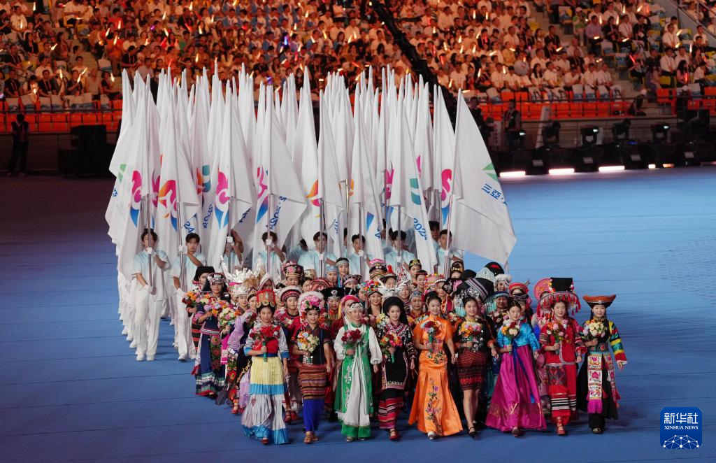 11月22日,中華人民共和國第十二屆少數(shù)民族傳統(tǒng)體育運(yùn)動(dòng)會(huì)會(huì)旗方隊(duì)在開幕式上入場。