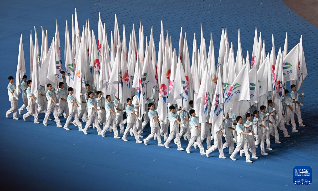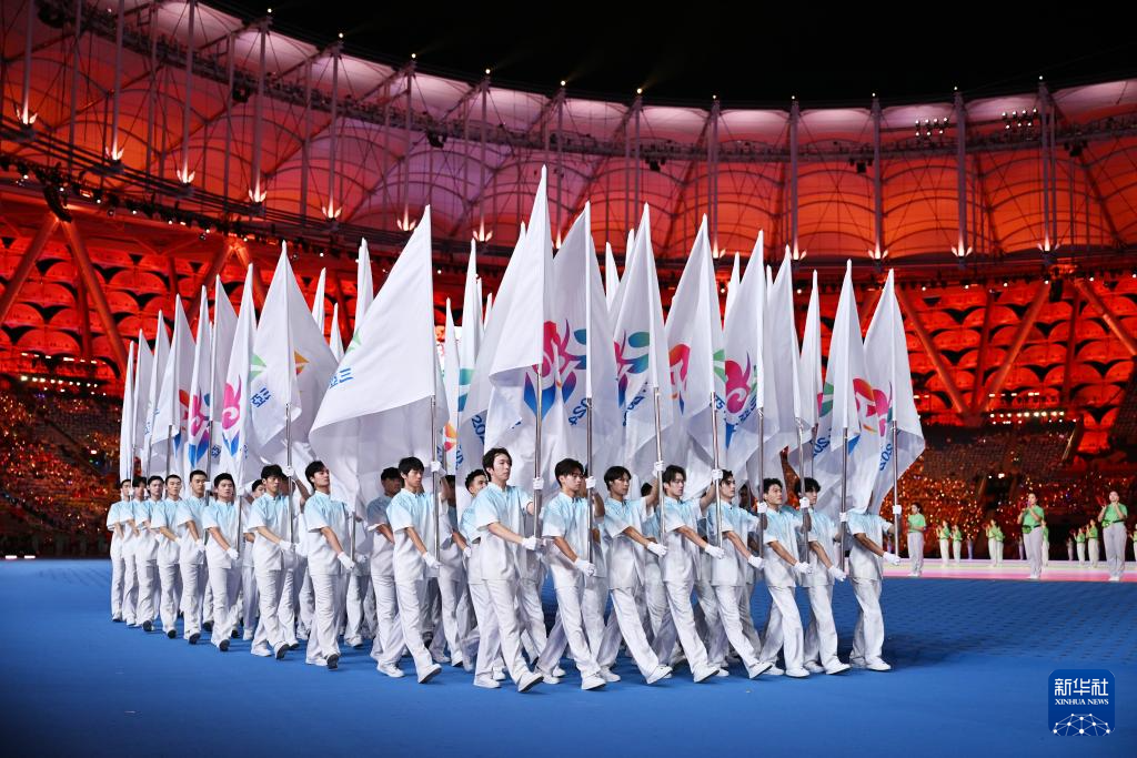 11月22日,中華人民共和國少數(shù)民族傳統(tǒng)體育運(yùn)動(dòng)會(huì)會(huì)旗在開幕式上入場。