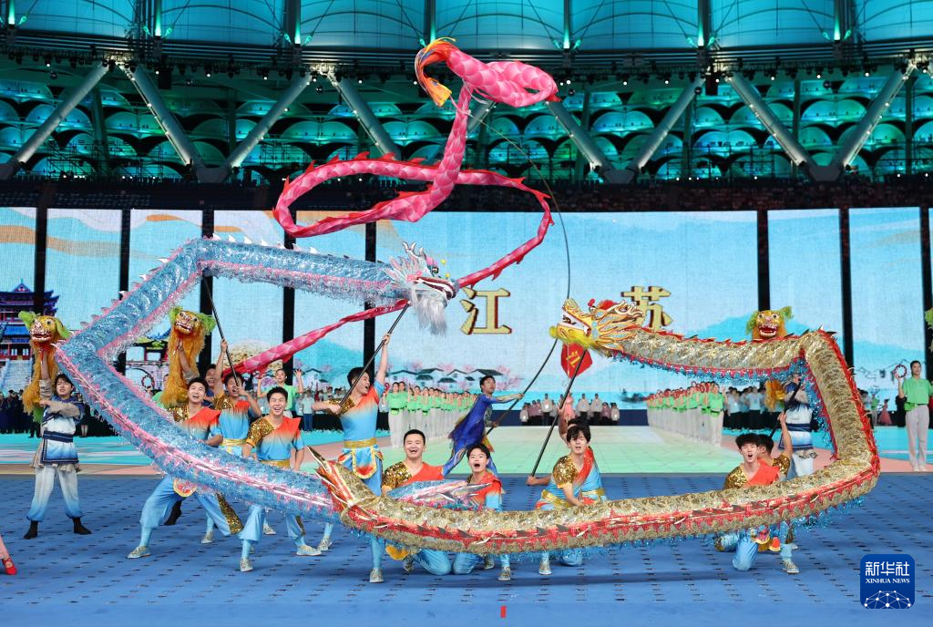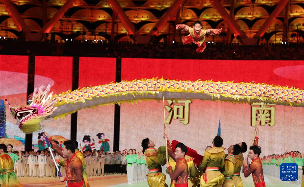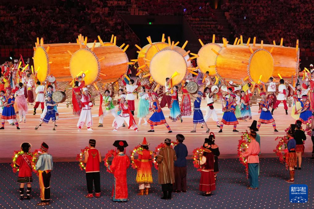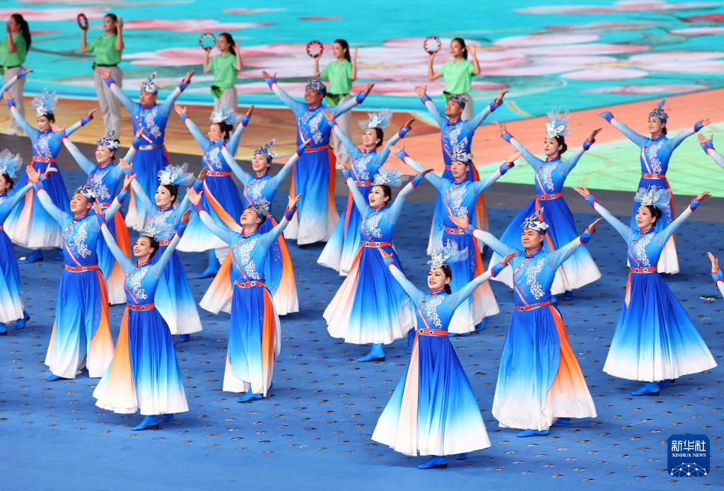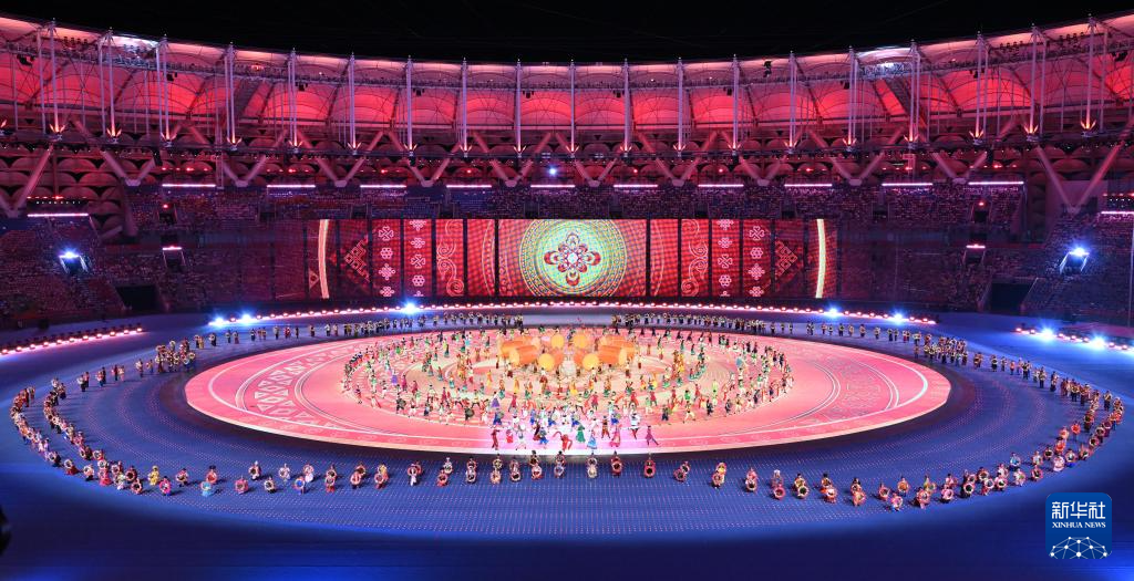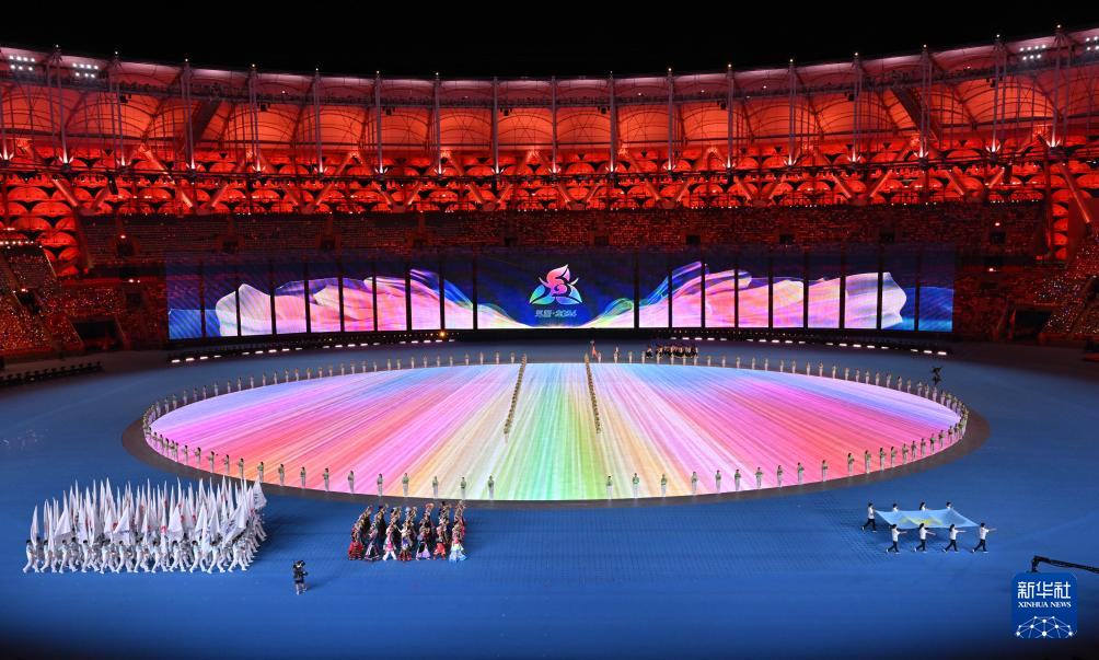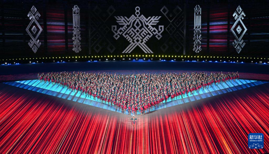 11月22日,開幕式現(xiàn)場升起中華人民共和國國旗、中華人民共和國少數(shù)民族傳統(tǒng)體育運(yùn)動(dòng)會(huì)會(huì)旗和中華人民共和國第十二屆少數(shù)民族傳統(tǒng)體育運(yùn)動(dòng)會(huì)會(huì)旗。