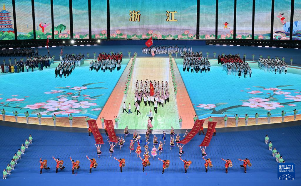 11月22日,浙江省代表團(tuán)在開幕式上入場。