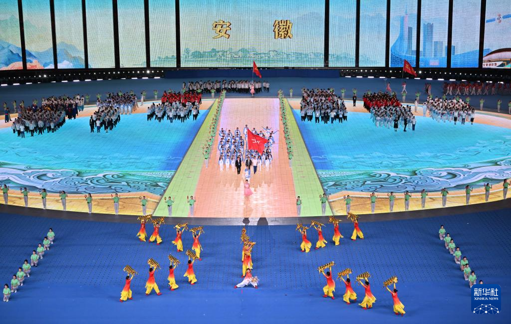 11月22日,安徽省代表團(tuán)在開幕式上入場。