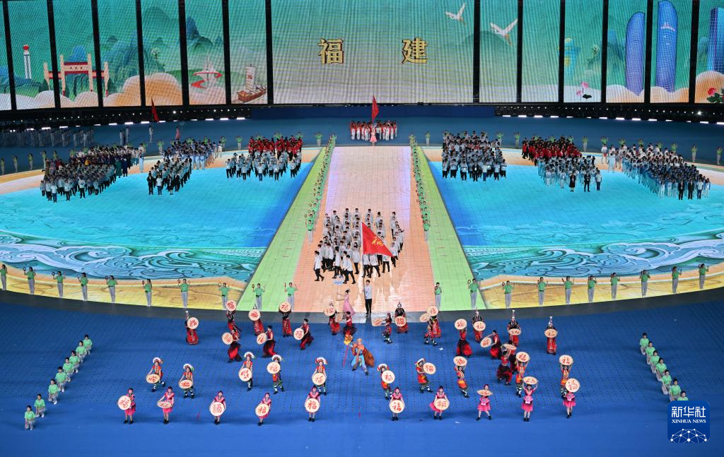 11月22日,福建省代表團(tuán)在開幕式上入場。