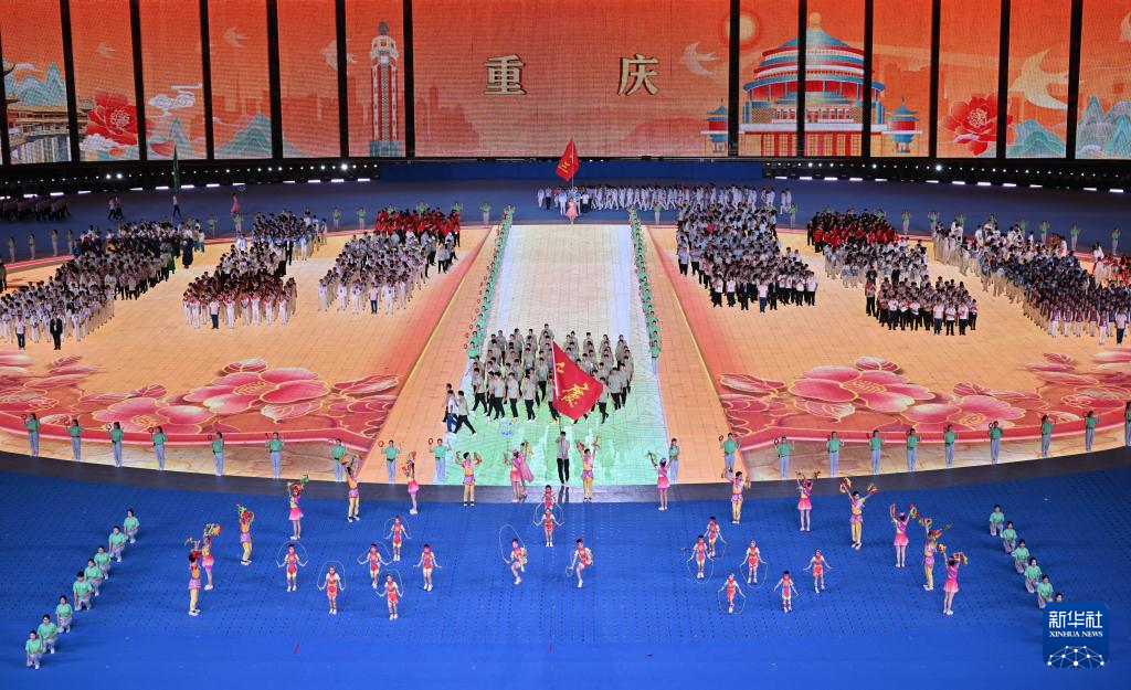 11月22日,重慶市代表團(tuán)在開幕式上入場。