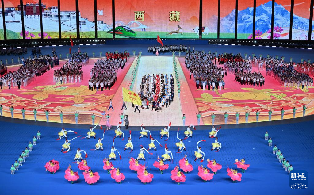 11月22日,西藏自治區(qū)代表團(tuán)在開幕式上入場。