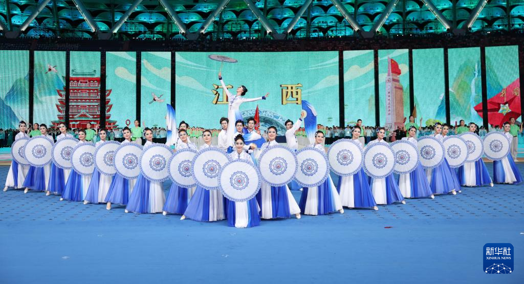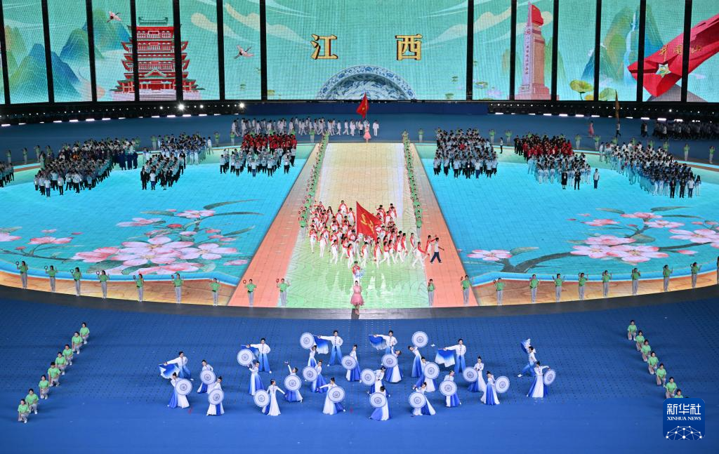 11月22日,江西省代表團(tuán)在開幕式上入場。