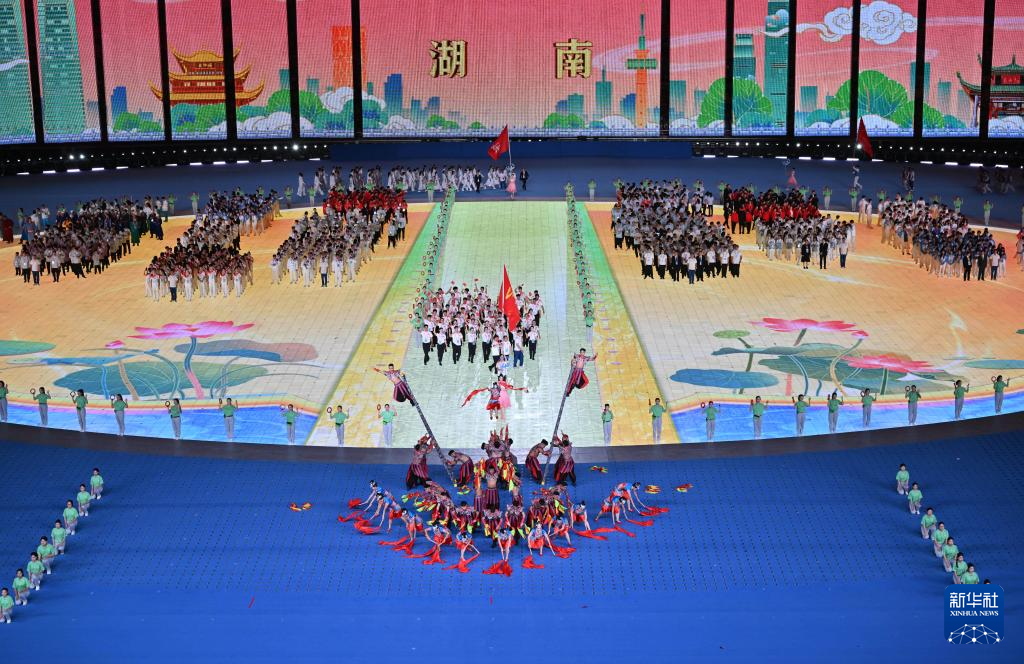 11月22日,湖南省代表團(tuán)在開幕式上入場。