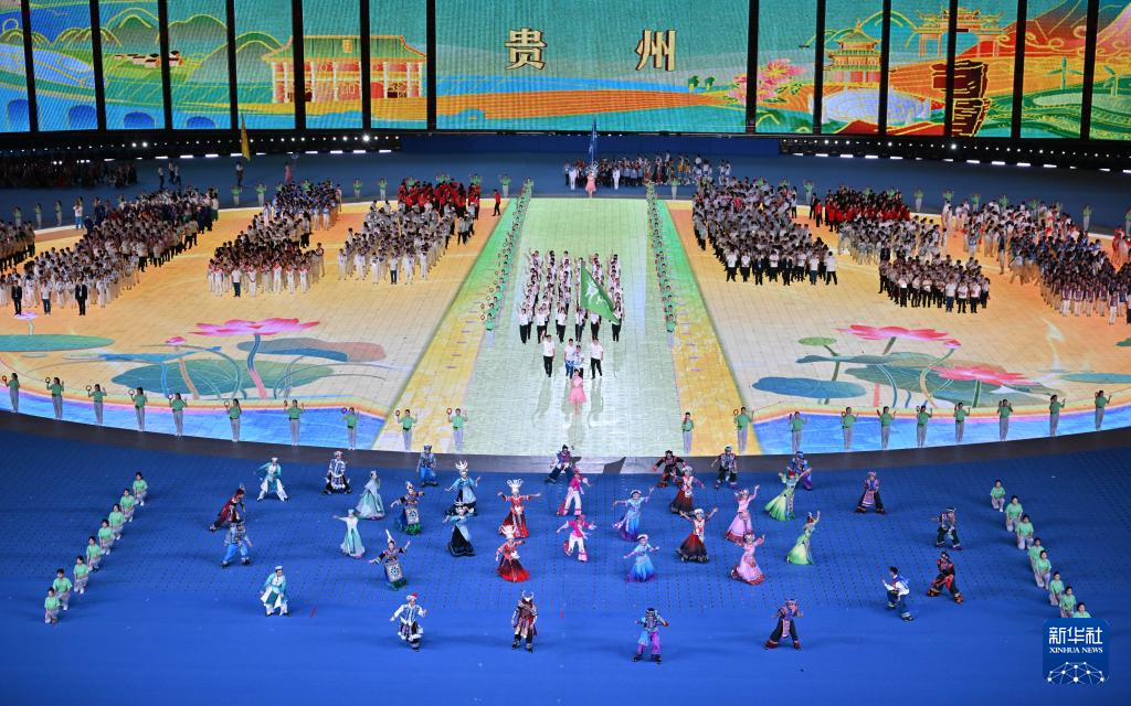 11月22日,貴州省代表團(tuán)在開幕式上入場。