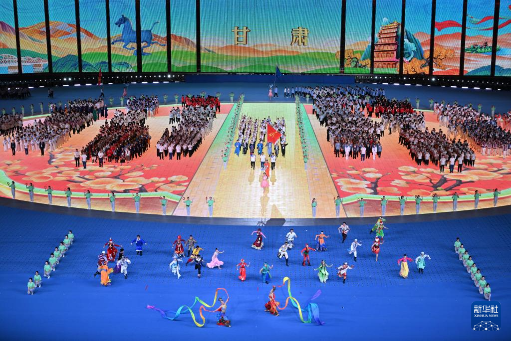 11月22日,甘肅省代表團(tuán)在開幕式上入場。