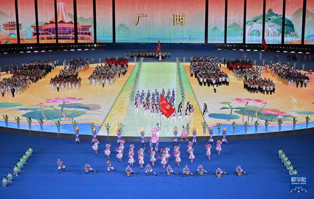 11月22日,廣西壯族自治區(qū)代表團(tuán)在開幕式上入場。