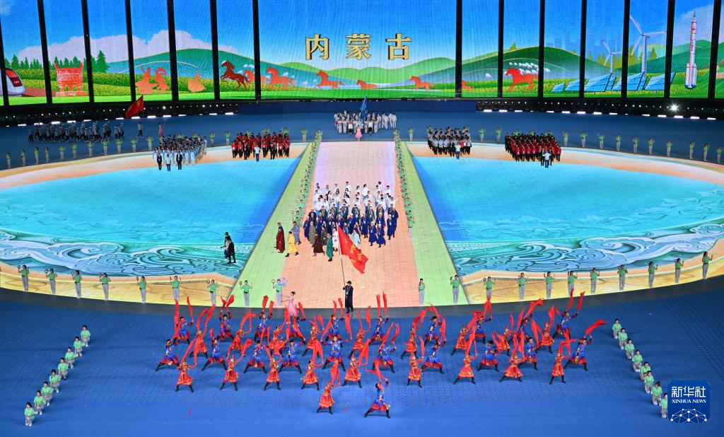 11月22日,內(nèi)蒙古自治區(qū)代表團(tuán)在開幕式上入場。