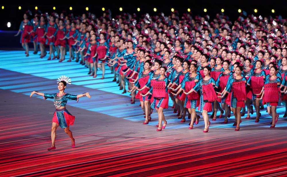 各個代表團入場時,都伴隨30秒的駐停表演,在展示民族文化與地方特色的同時,也為觀眾帶來一場視聽盛宴。