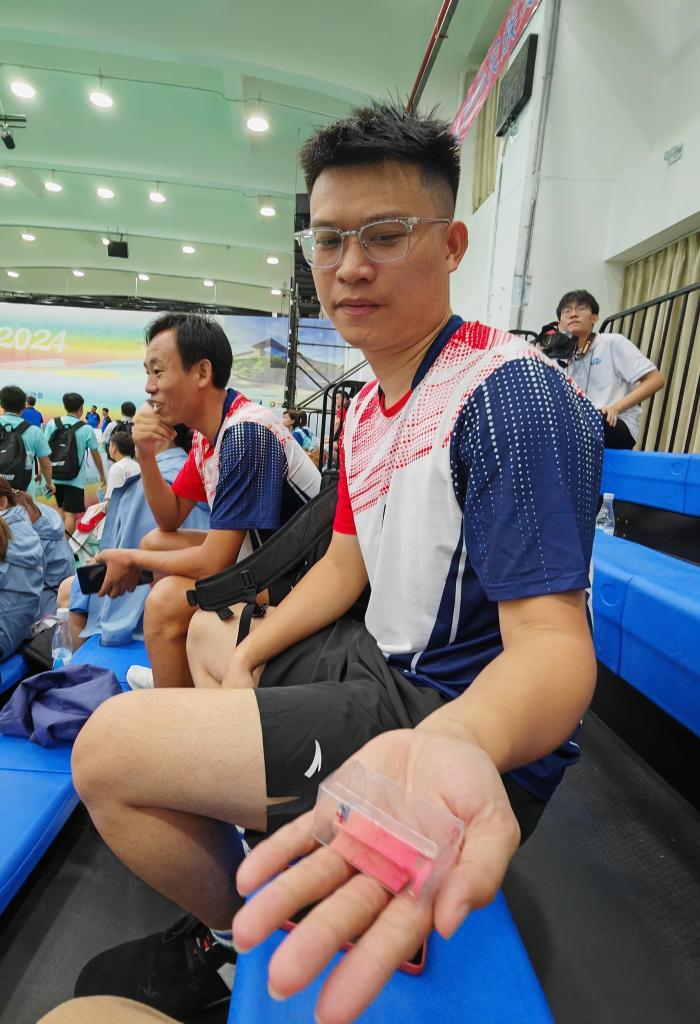 “香港隊(duì)很厲害,沒想到他們還給我們準(zhǔn)備了禮物,挺驚喜的?!蔽鞑仃?duì)毽球運(yùn)動(dòng)員韋盛森從褲兜里掏出一個(gè)精致的粉色毽球掛飾給記者看,并懊惱自己沒有準(zhǔn)備禮物?!百惡笪覀兒拖愀坳?duì)說了很多互相鼓勵(lì)的話,我們希望找機(jī)會(huì)再和他們交流?!?/p>