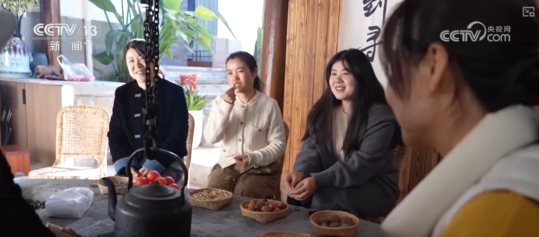 初冬時(shí)節(jié),在騰沖市和順鎮(zhèn)大莊村一間客棧里,客棧老板寸海燕正在火塘邊一邊烤茶,一邊向客人介紹當(dāng)?shù)氐奶厣〕浴?/p>