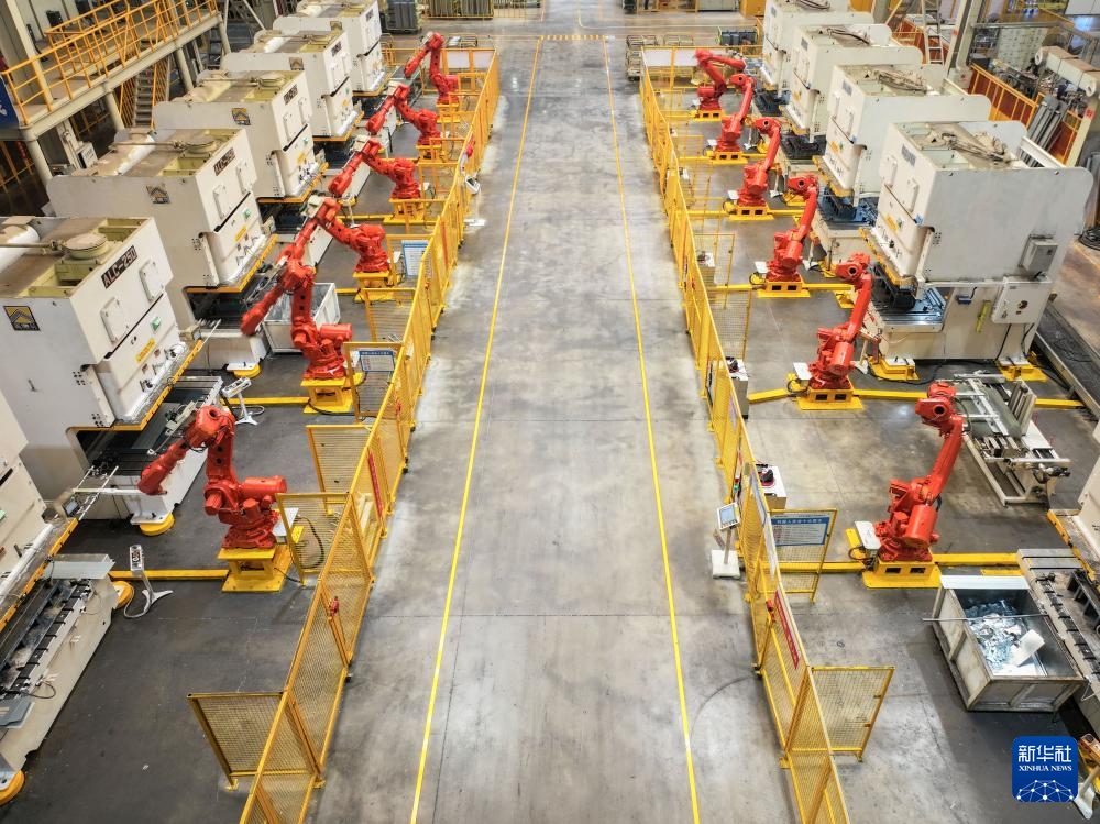 9月27日,機(jī)械臂在位于寧鄉(xiāng)市金洲新城的格力暖通制冷設(shè)備有限公司生產(chǎn)線上作業(yè)(無(wú)人機(jī)照片)。新華社記者 陳澤國(guó) 攝