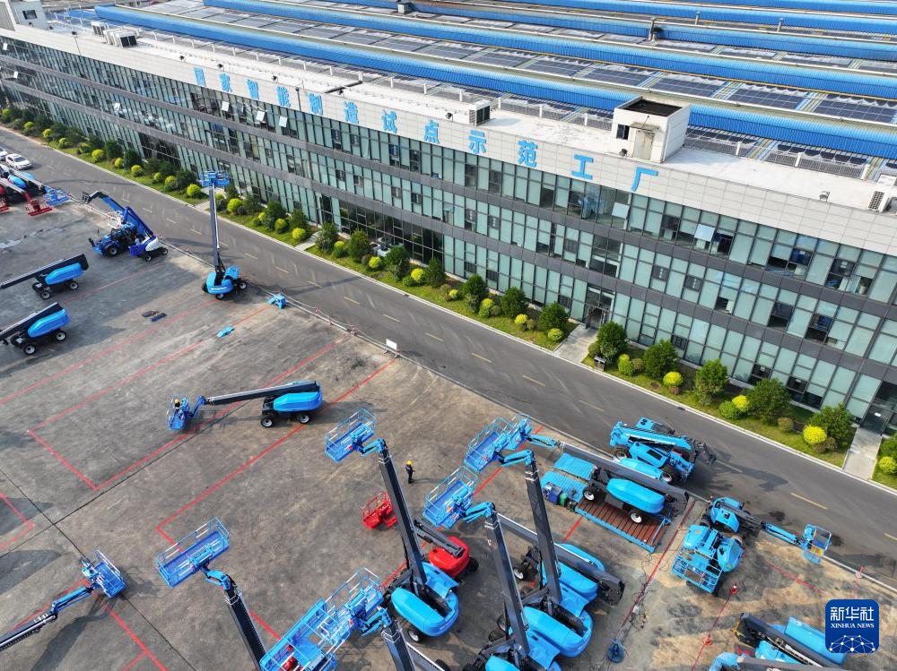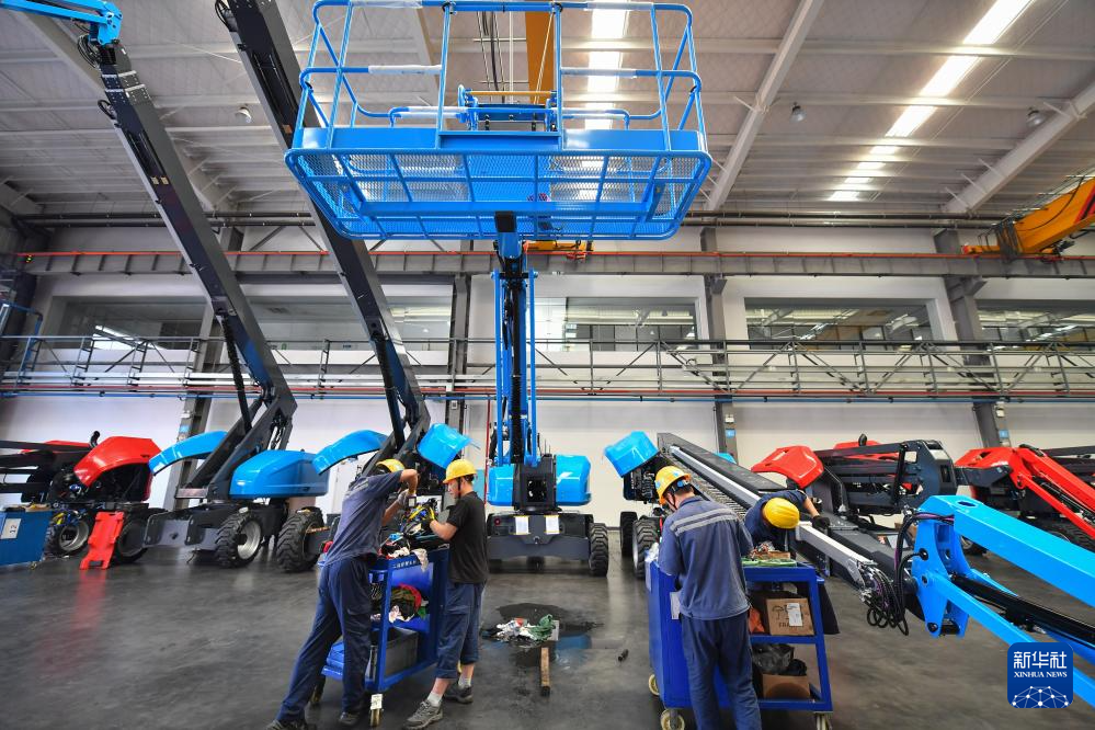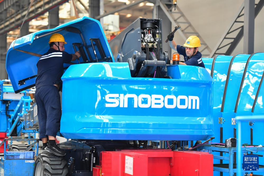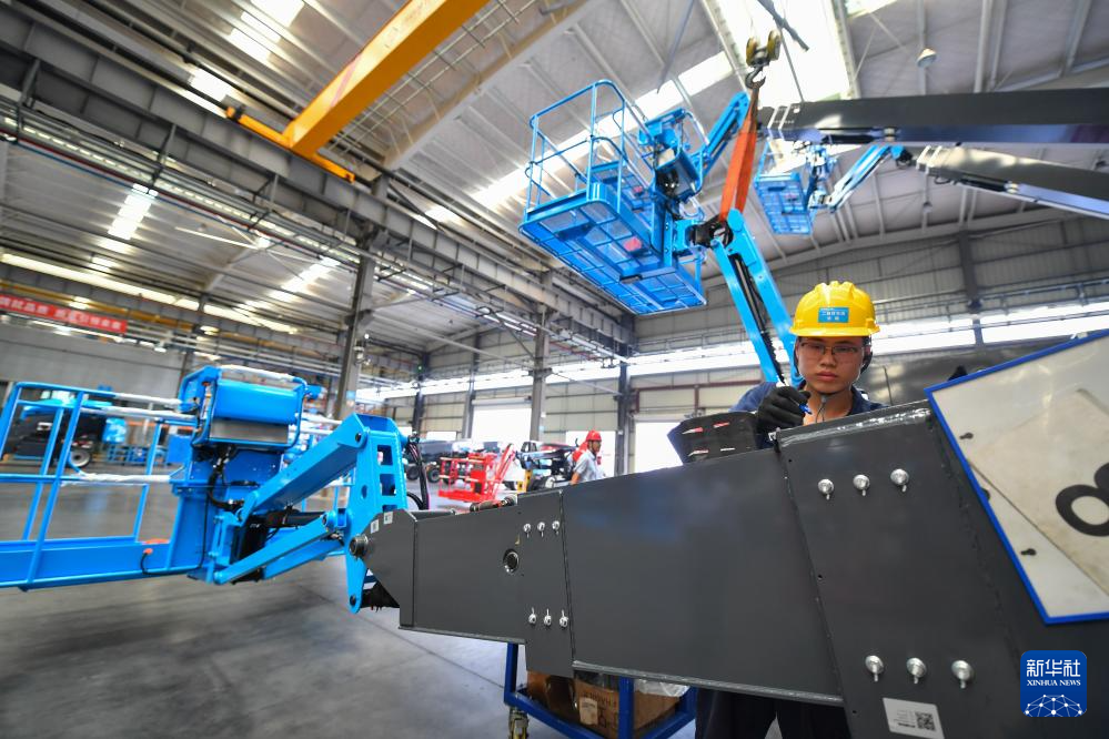 工作人員在位于寧鄉(xiāng)市的湖南星邦智能裝備股份有限公司高空作業(yè)產(chǎn)品裝備車間作業(yè)(9月27日攝)。新華社記者 陳澤國(guó) 攝