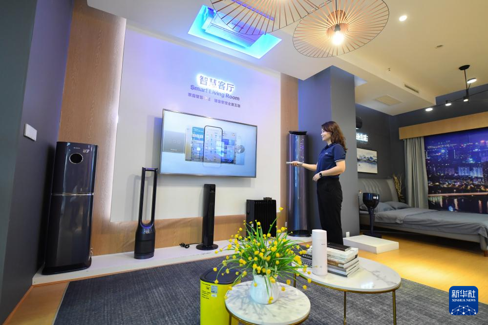 9月27日,工作人員在位于寧鄉(xiāng)市金洲新城的格力暖通制冷設(shè)備有限公司展示智能家電使用場(chǎng)景。新華社記者 陳澤國(guó) 攝