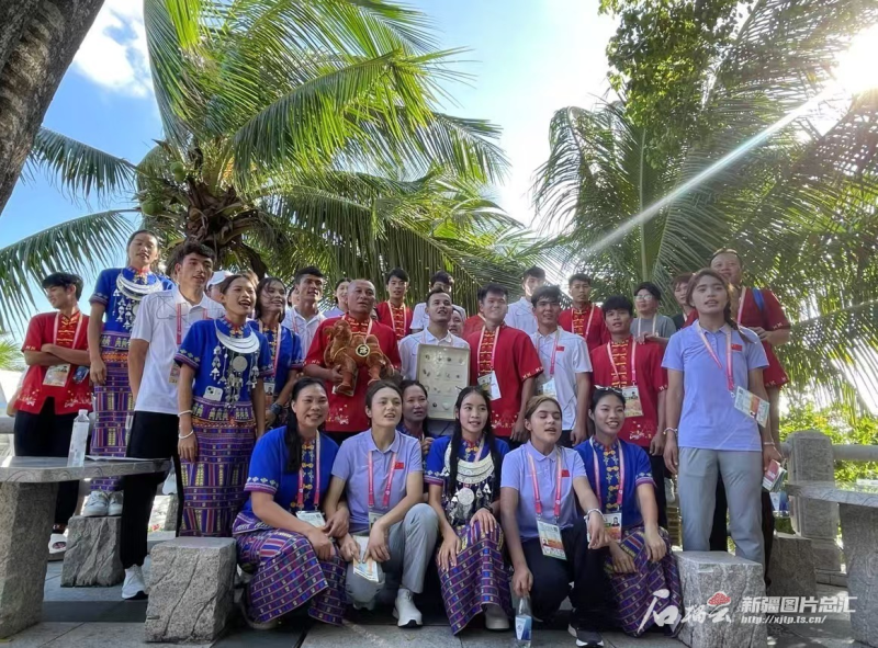 保亭黎族苗族自治縣歌舞團的姑娘們還帶著新疆代表團成員體驗竹竿舞。“我們從接到任務到現(xiàn)在已準備了一年多,看到各民族交往交流交融的畫面感到很高興。”黎族姑娘王桃雀說。