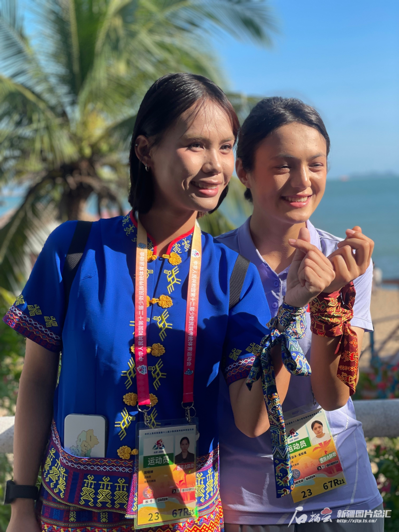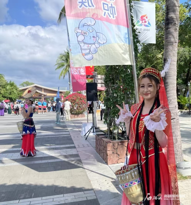 歡迎儀式的人群中,一頭麻花辮的艾麗非熱·艾爾肯非常引人注意,很多運動員前去與她合影,“我們排練一個月了,我要用最好的狀態(tài)為運動員加油,今天看見了很多家鄉(xiāng)的運動員,特別激動,等我表演完就去找他們合影?!卑惙菬峤榻B,她家在新疆阿克蘇,在三亞理工職業(yè)學院上大二,這幾天每天都在關注運動會的各類信息。