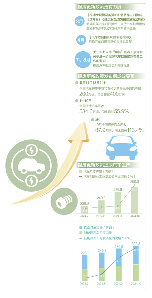 政策激發(fā)了消費(fèi)者以舊換新熱情,也讓中再生這樣的報(bào)廢汽車回收拆解企業(yè)生產(chǎn)線更加忙碌。中再生報(bào)廢汽車事業(yè)部副經(jīng)理王功獻(xiàn)介紹,截至11月上旬,中再生共收購報(bào)廢機(jī)動(dòng)車1萬余輛,與去年同期相比增長近七成。