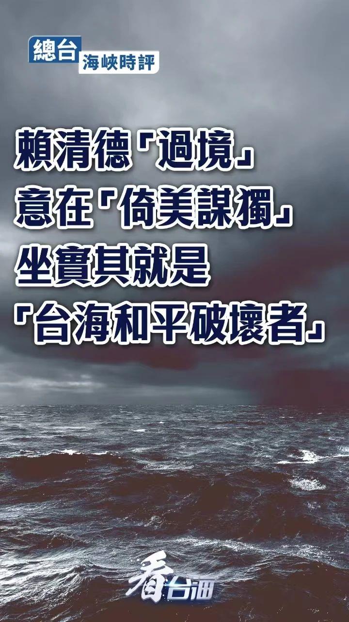 賴清德深知“過境”美國必然遭到大陸方面堅決反對、有力反制,只會加劇臺海緊張局勢。因此,在其行前賴當局就勾連外部勢力在國際上造勢,妄圖以所謂“慣例說”將此行正當化,掩蓋其挑釁在先、破壞和平的惡劣本質。臺灣是中國的臺灣,臺灣地區(qū)領導人以任何名義任何理由“過境”美國,都是對一個中國原則的嚴重挑戰(zhàn)。錯誤的所謂“慣例”不僅不是正當化的理由,還是錯上加錯、惡上加惡,一步步把臺灣推向更加危險的境地。