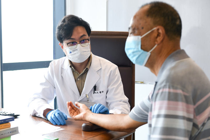 來自香港的注冊(cè)中醫(yī)師郭鈞泯(左)在深圳市中醫(yī)藥傳承發(fā)展研究院為病人看診(2023年9月4日攝)。新華社記者 毛思倩 攝