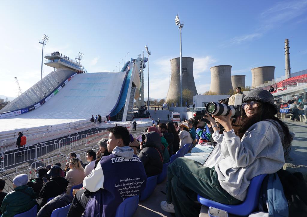 11月30日,觀眾在首鋼大跳臺(tái)觀看2024-2025賽季國(guó)際雪聯(lián)單板及自由式滑雪大跳臺(tái)世界杯北京站比賽。新華社記者 張晨霖 攝