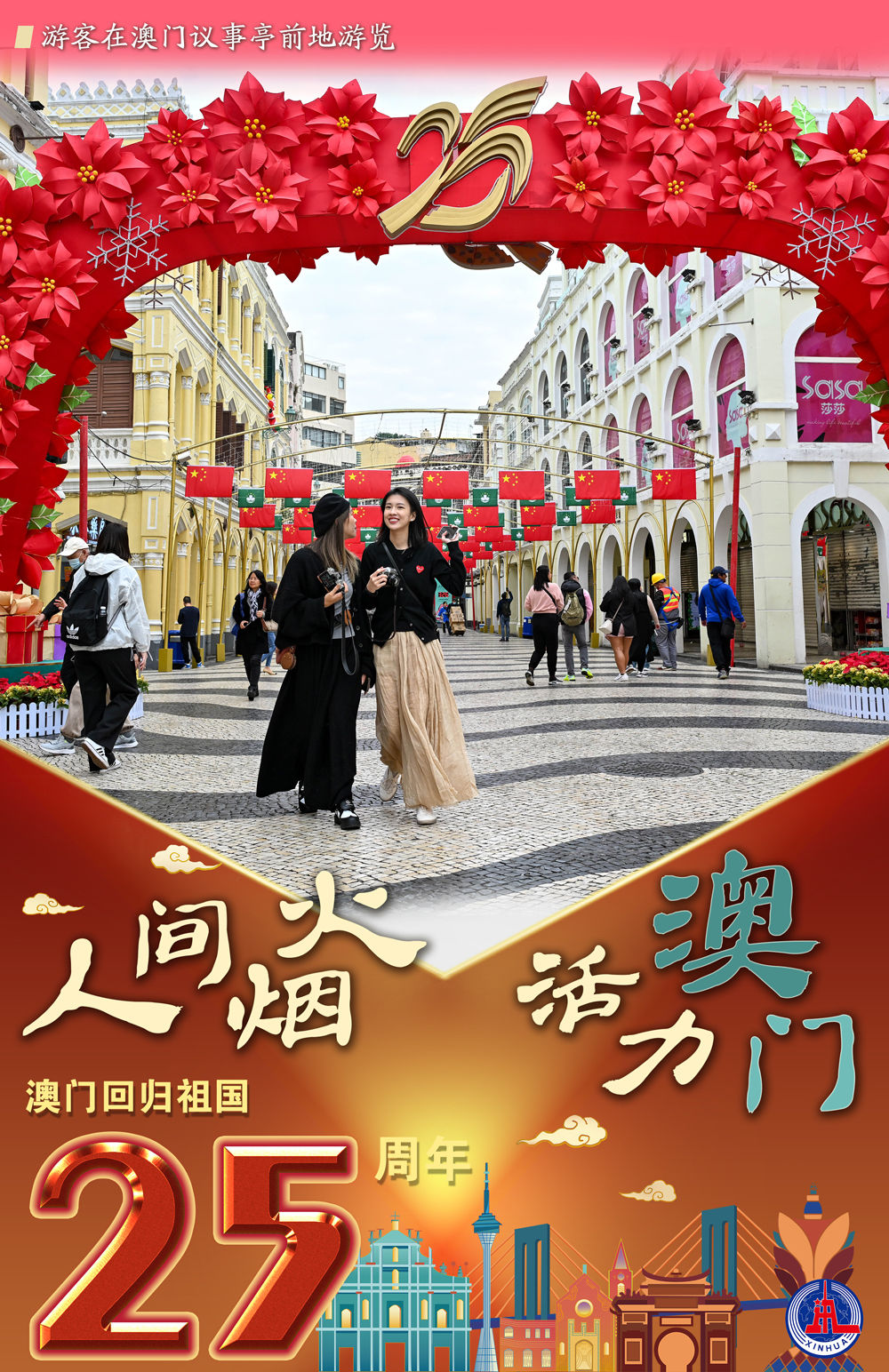 25年來,澳門經(jīng)濟(jì)快速增長、民生持續(xù)改善、社會和諧穩(wěn)定、國際影響力顯著提升。如今的澳門精彩紛呈,傳統(tǒng)融入現(xiàn)代,澳門的街道“充滿了活力與生機(jī)”。作為獨特的旅游目的地,澳門大型盛事、表演以及大大小小的節(jié)慶活動貫穿整年,活潑的“人間煙火氣”格外吸引游客,他們在這里品嘗全球美食、欣賞優(yōu)秀藝術(shù),一起體驗“最是動聽凡人歌”的活力澳門。