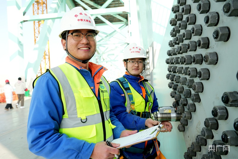 “扳手剛接觸螺栓顯示扭矩是100,再轉(zhuǎn)動(dòng)一格半,顯示的就是檢測值?!焙斡呈炀毜叵蛴浾呓榻B檢測工作。冬日里,高原地區(qū),黃河之上,凌冽的寒風(fēng)似乎要比以往更刺骨一些,所以晴天的正午,正是施工的最佳時(shí)機(jī)。