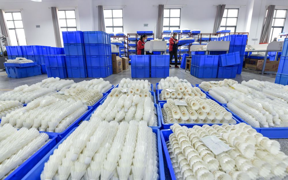 敦寨鎮(zhèn)的羽毛球,還衍生出了包括羽毛球拍等產(chǎn)品和包裝在內的眾多下游企業(yè)。其中一家公司生產(chǎn)的碳纖維羽毛球拍,每月可達3萬支,大部分產(chǎn)品出口到東南亞等海外市場。