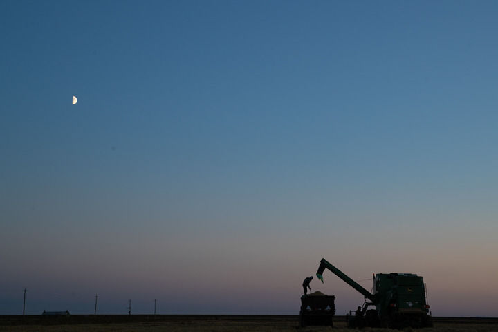 2024年10月11日,在位于黑龍江省鶴崗市綏濱縣的北大荒集團(tuán)普陽農(nóng)場有限公司作業(yè)區(qū),種植戶駕駛農(nóng)機(jī)進(jìn)行收割作業(yè)。新華社記者 張濤 攝