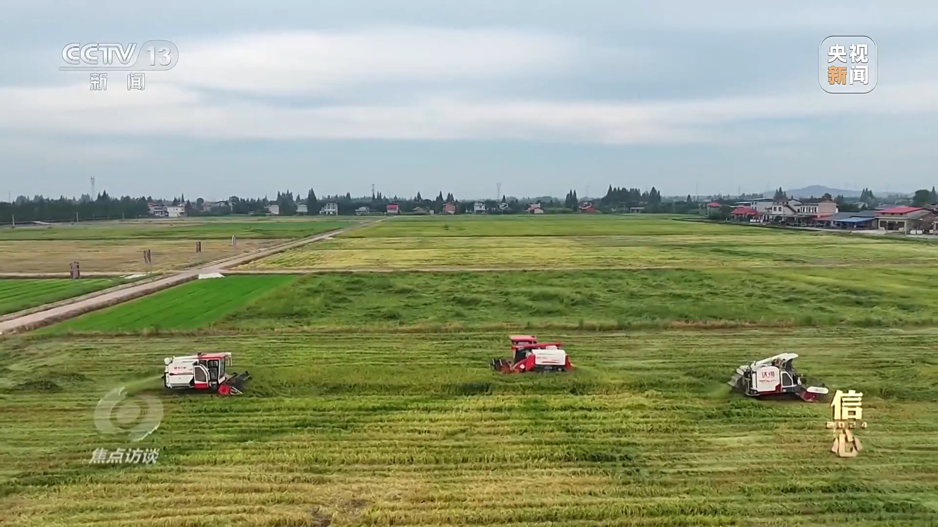 農(nóng)業(yè)是一切發(fā)展的基礎(chǔ),今年我國(guó)糧食不僅連續(xù)第21年迎來(lái)豐收,而且首次超過(guò)了1.4萬(wàn)億斤。位于湖北荊門的一片農(nóng)田,豐收的色彩濃郁飽滿,今年這里實(shí)施大豆玉米帶狀復(fù)合種植,第一次采用6行玉米4行大豆相間種植,實(shí)現(xiàn)了一地雙收,畝產(chǎn)首次超過(guò)了1200斤。廣東清遠(yuǎn),水稻田里一片金黃,走近去看,粒粒飽滿,這里種植的是絲苗米。在收割機(jī)的幫助下,稻谷顆粒歸倉(cāng)。通過(guò)現(xiàn)代化農(nóng)業(yè)技術(shù)的應(yīng)用,這里確保了水稻穩(wěn)產(chǎn)高產(chǎn),農(nóng)業(yè)產(chǎn)業(yè)化跑出了加速度,僅一季晚稻的畝產(chǎn)量就超過(guò)了1200斤,和去年相比增加了近10%。2024年,我國(guó)糧食再獲豐收,單產(chǎn)提升是重要的支撐。民以食為天,把中國(guó)飯碗牢牢端住,讓人倍感踏實(shí)。