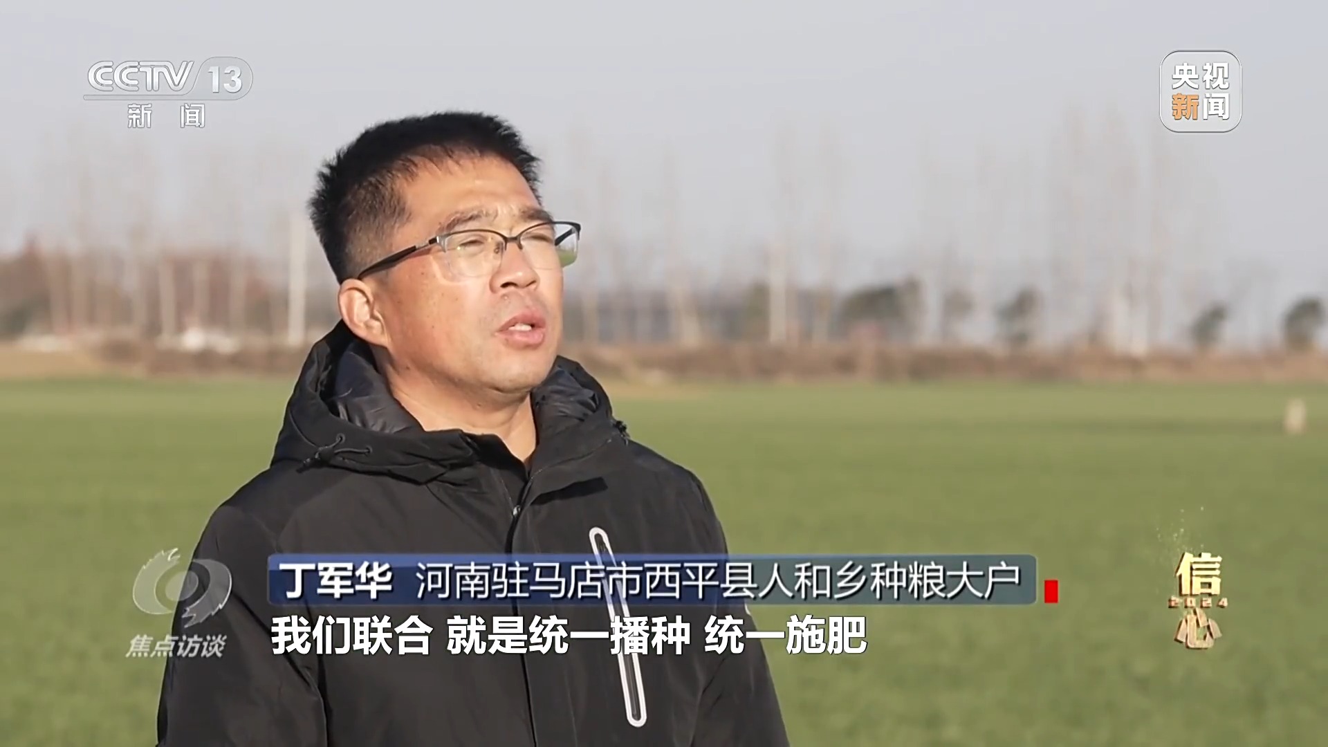 河南駐馬店市西平縣仁和鄉(xiāng)種糧大戶 丁軍華:“我們聯(lián)合就是統(tǒng)一播種、統(tǒng)一施肥、統(tǒng)一管理、統(tǒng)一打藥、統(tǒng)一購(gòu)銷和統(tǒng)一收割,做到了‘六統(tǒng)一’,共同抱團(tuán)去跟廠家談判、爭(zhēng)取最低的價(jià)格。這一次小麥播種,我們從黑龍江引進(jìn)大型氣吸型播種機(jī),地少了它不來(lái),用這種播種機(jī),一畝地比普通播種機(jī)增產(chǎn)15%以上?!?/p>